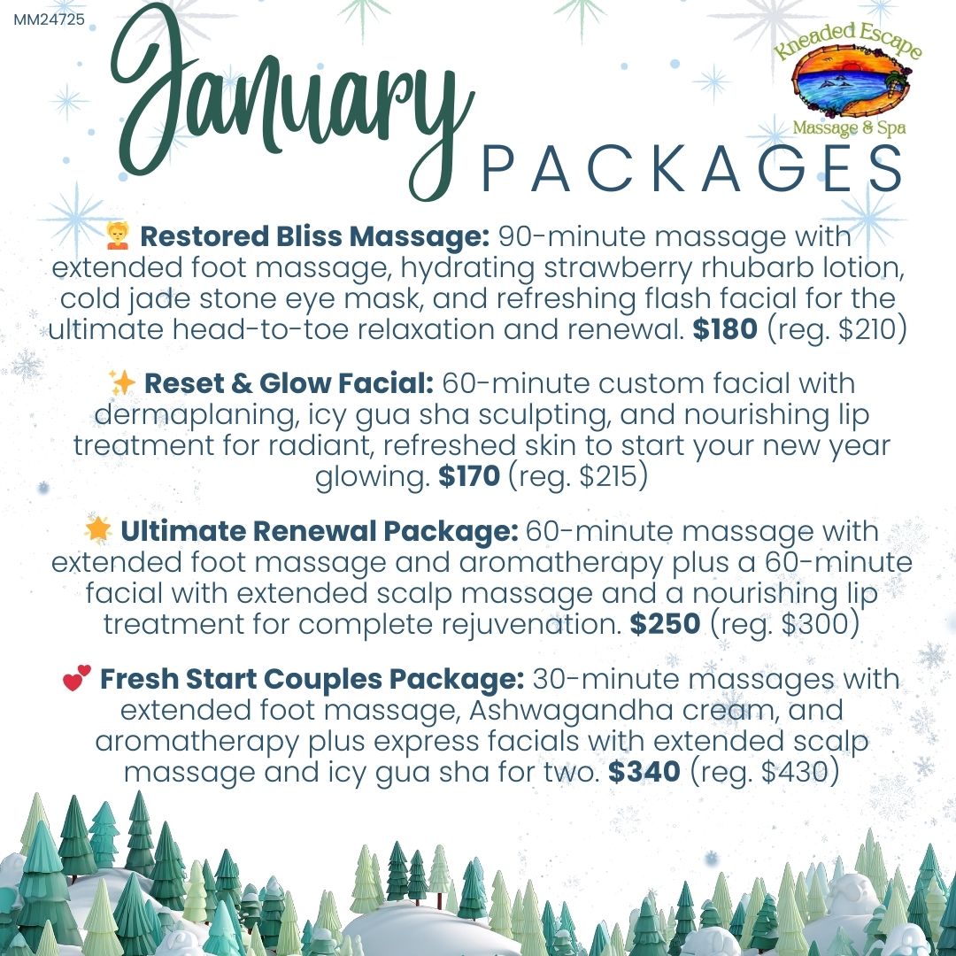 Ready to start the year refreshed? Book your package today - these special combinations are only available through January 31st!